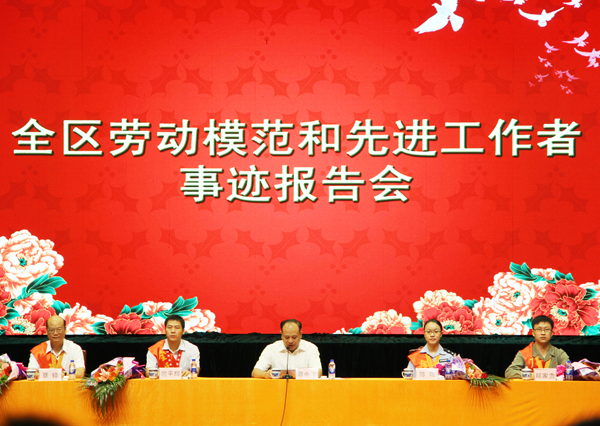 報(bào)告會(huì)由北海市委副書記蔡中平主持,自治區(qū)總工會(huì)副主席廖志剛?cè)螆?bào)告團(tuán)團(tuán)長(zhǎng)。全國(guó)先進(jìn)工作者、來賓市公安局刑偵支隊(duì)法醫(yī)陳琨,全國(guó)勞動(dòng)模范、桂林建筑安裝工程有限公司抹灰工祝平輝,自治區(qū)勞動(dòng)模范、廣西柳州鋼鐵(集團(tuán))公司轉(zhuǎn)爐煉鋼廠生產(chǎn)科副科長(zhǎng)邱家貴,自治區(qū)勞動(dòng)模范、南寧市明天學(xué)校校長(zhǎng)覃鋒等4位同志分別在會(huì)上作了先進(jìn)事跡報(bào)告。勞模們用樸實(shí)的語言與大家分享工作、生活中的酸甜苦辣,講述著各自在平凡崗位上默默奉獻(xiàn)、任勞任怨的感人事跡,用親身經(jīng)歷向人們展示著“愛崗敬業(yè)、爭(zhēng)創(chuàng)一流,艱苦奮斗、勇于創(chuàng)新,淡泊名利、甘于奉獻(xiàn)”的勞模精神,一個(gè)個(gè)生動(dòng)感人的事例鼓舞人心、催人奮進(jìn)。