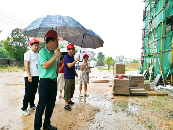 安全生產(chǎn)督查組一行詳細了解了項目建設進度,在冒雨查看了施工現(xiàn)場的安全生產(chǎn)情況后,對創(chuàng)新港項目的安全生產(chǎn)、安全施工的工作給予了肯定。傅文偉說:“安全生產(chǎn)責任重大,容不得半點馬虎,正五海產(chǎn)公司一定要敦促施工企業(yè)高度重視,完善安全警示標志,加強安全施工教育培訓?!蓖瑫r希望施工企業(yè)要加快外墻大理石安裝的施工進度,以防夏季突襲的臺風對其造成破壞和不必要的損失。