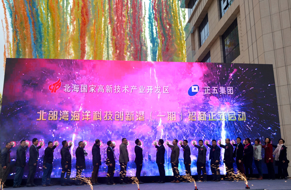 1月8日,備受各方關(guān)注的北部灣海洋科技創(chuàng)新港項(xiàng)目(一期)招商啟動(dòng)儀式隆重舉行。北海市各政府部門(mén)相關(guān)領(lǐng)導(dǎo)以及全市政商知名人士、企業(yè)代表等近500名嘉賓出席了活動(dòng)。創(chuàng)新港項(xiàng)目的順利推進(jìn),是廣西正五實(shí)業(yè)集團(tuán)有限公司上下因時(shí)而動(dòng)、順勢(shì)而為,在“一帶一路”框架下推動(dòng)大開(kāi)放大開(kāi)發(fā),奏響“向海經(jīng)濟(jì)”藍(lán)色交響樂(lè)的新序曲。