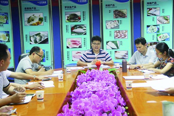 根據(jù)會(huì)議議程,正五海產(chǎn)公司總經(jīng)理崔小祥匯報(bào)了企業(yè)2018年第一季度各項(xiàng)指標(biāo)完成情況,并對(duì)第二季度的生產(chǎn)經(jīng)營(yíng)管理工作進(jìn)行了部署;各部門經(jīng)理(主管)總結(jié)分析了第一節(jié)度存在的問(wèn)題及圍繞第二季度工作開(kāi)展進(jìn)行了討論??偨?jīng)理助理林春對(duì)正五海產(chǎn)公司旺季生產(chǎn)車間各項(xiàng)配套計(jì)劃進(jìn)行通報(bào)。