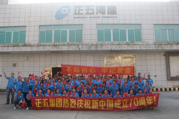 下午,正五集團(tuán)組織員工在正五海產(chǎn)大廣場(chǎng)舉行慶祝新中國(guó)成立