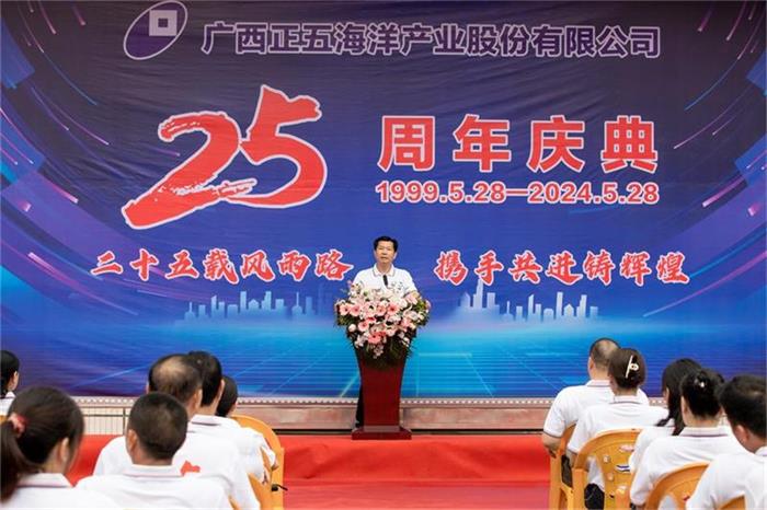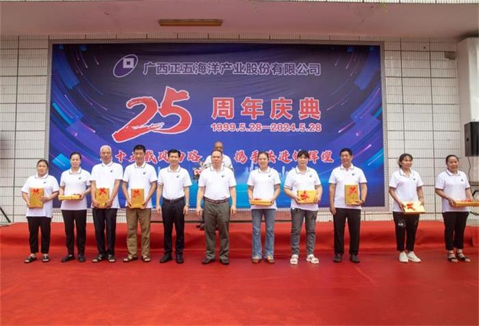 甲辰龍年,芬芳五月。2024年5月28日上午,在正五海產(chǎn)公司廣場舉行海產(chǎn)公司開業(yè)25周年慶典活動,公司員工近兩百人歡聚一堂,共襄慶典,共同慶祝,慶典現(xiàn)場到處洋溢著團(tuán)結(jié)和喜悅的氛圍。