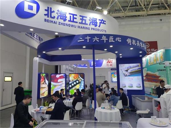 步入正五海產(chǎn)展區(qū),品牌標(biāo)志性的海洋主色調(diào)構(gòu)筑起整體空間,懸掛的燈箱熠熠生輝,正五海產(chǎn)公司通過融入休閑的火鍋食材理念,將青蝦滑、黑虎蝦滑和魚籽北極蚌滑等火鍋食材讓參觀者直觀感受從生態(tài)養(yǎng)殖到餐桌美食的完整價(jià)值鏈。